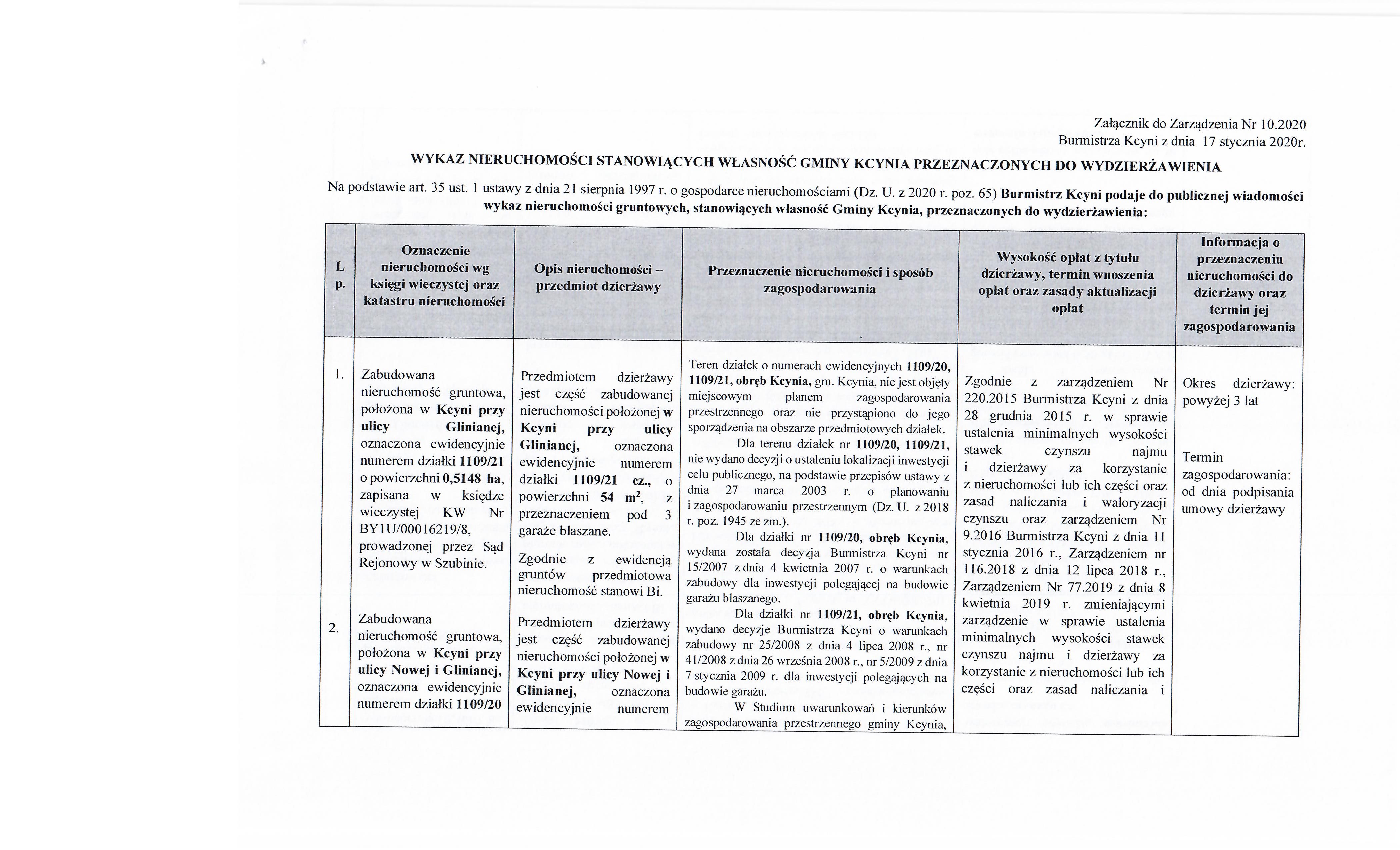 | edytowane: | data: 09:49, 31.01.2020 | przez: Anna Duda-Nowicka | Wykaz nieruchomości stanowiących własność Gminy Kcynia przeznaczonych do wydzierżawienia | |